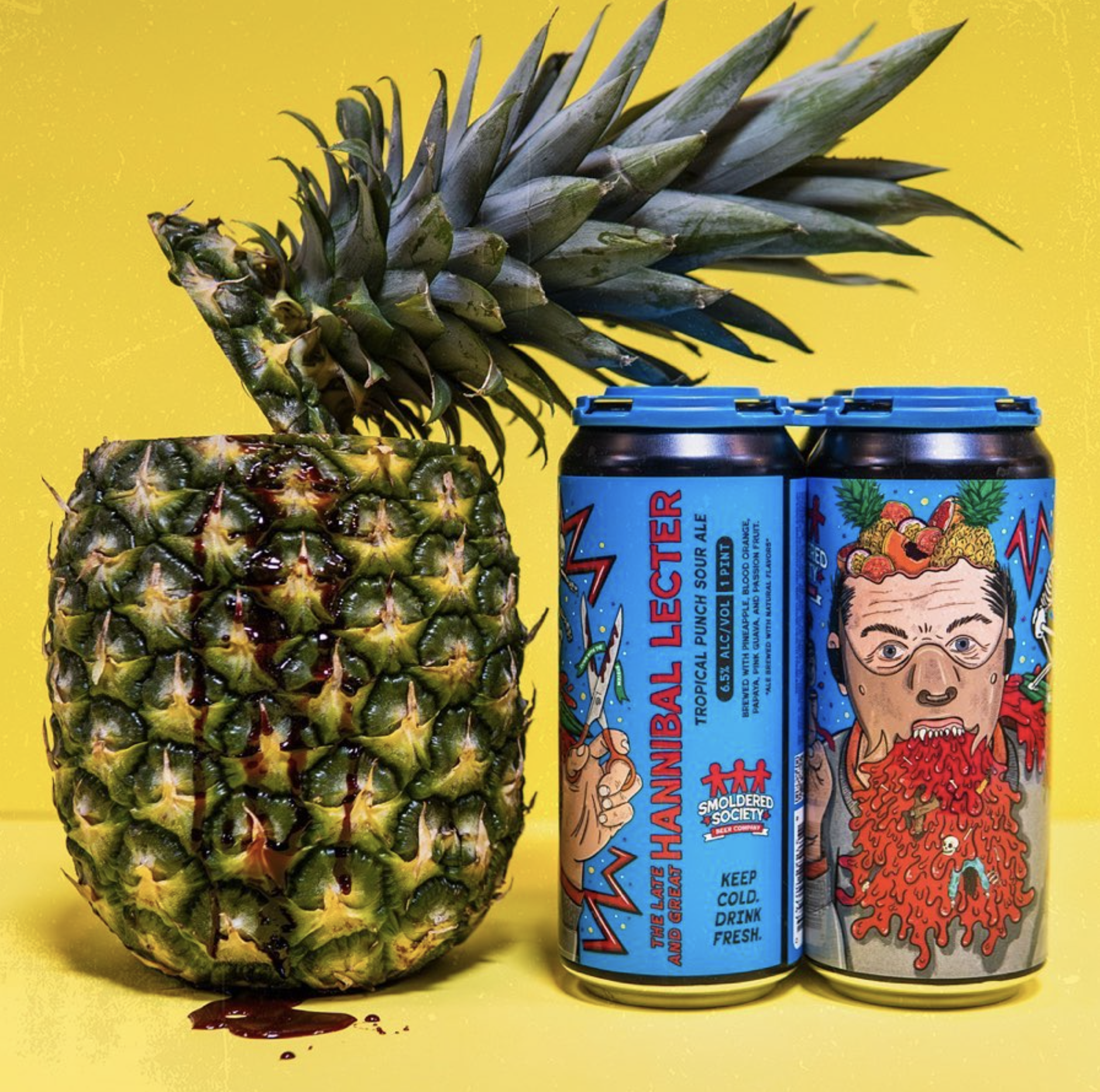 Highlighting hand-drawn, often morbid, politically tinged illustrations - the curation of matte black cans and lids make an excellent stark canvas, drawing more attention to the powerful labels.